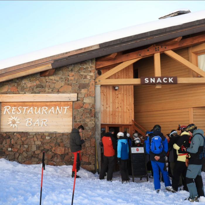 Le restaurant de l’Hôtel Lapiaz, situé directement au pied des pistes, invite à une pause gourmande dans un décor mêlant bois, fer forgé et cheminée centrale. La cuisine proposée s’inspire des saveurs alpines, entre bistronomie et spécialités savoyardes, idéale pour reprendre des forces après une journée de sports d’hiver. Un snack complète l’offre pour les petites faims entre deux descentes.